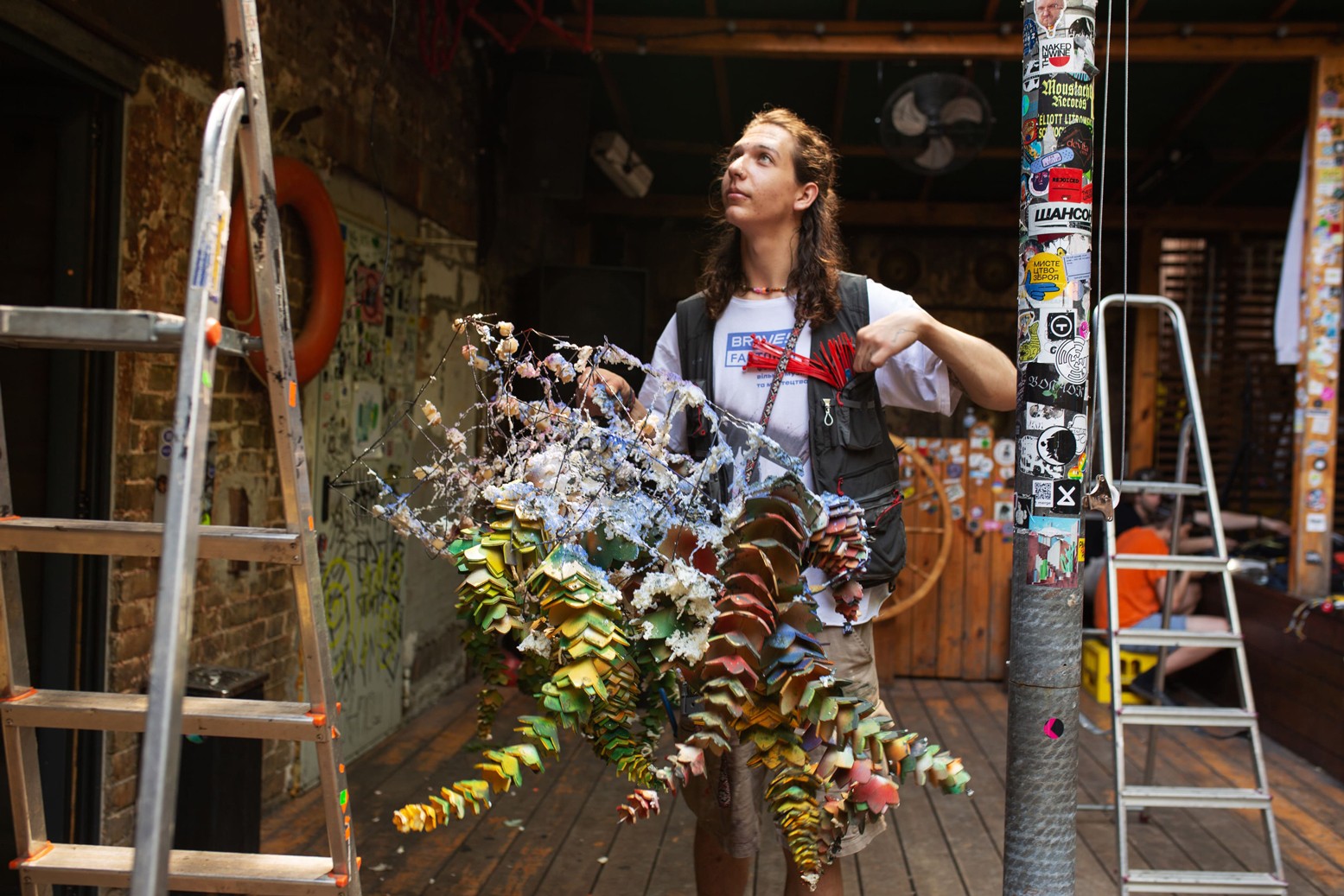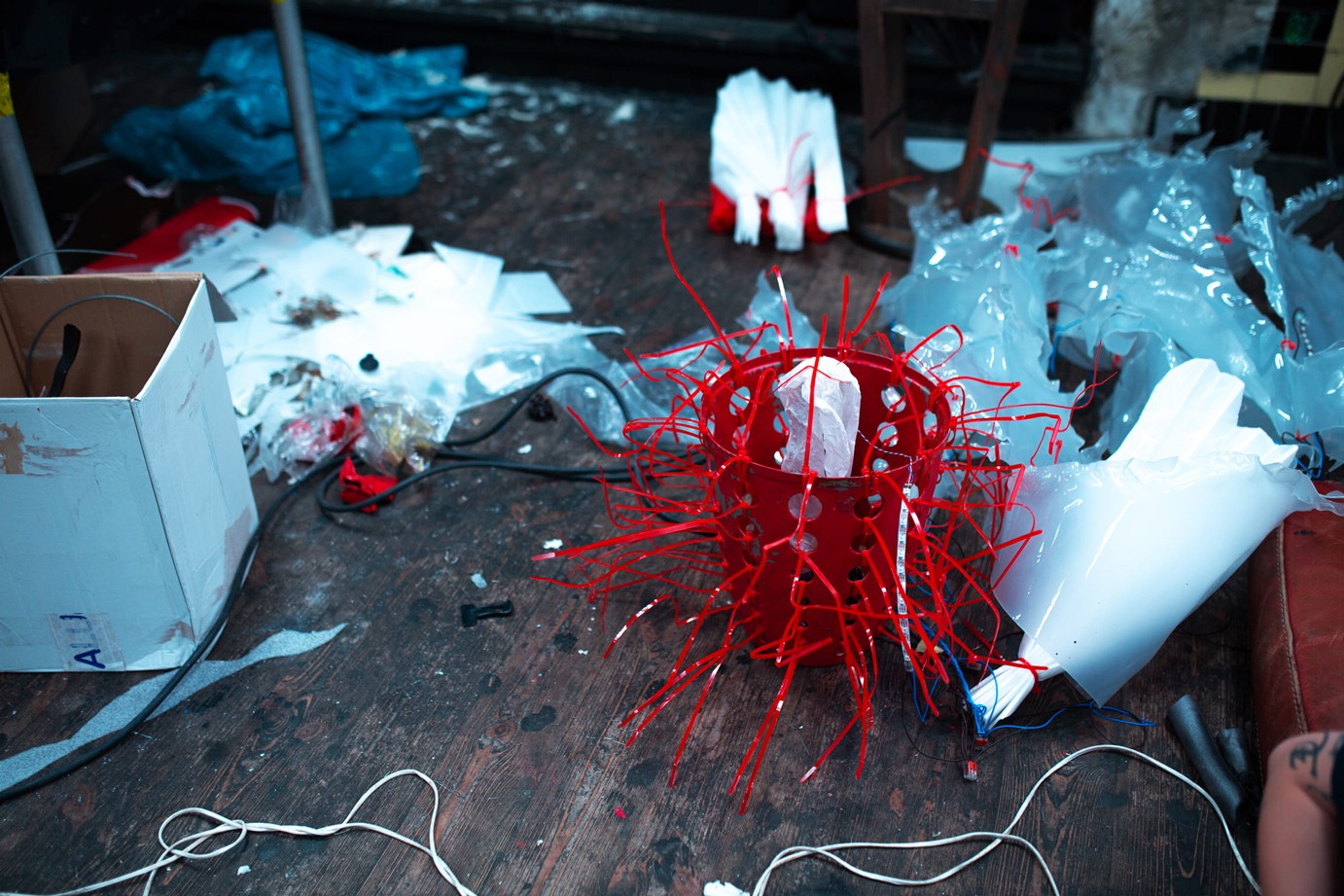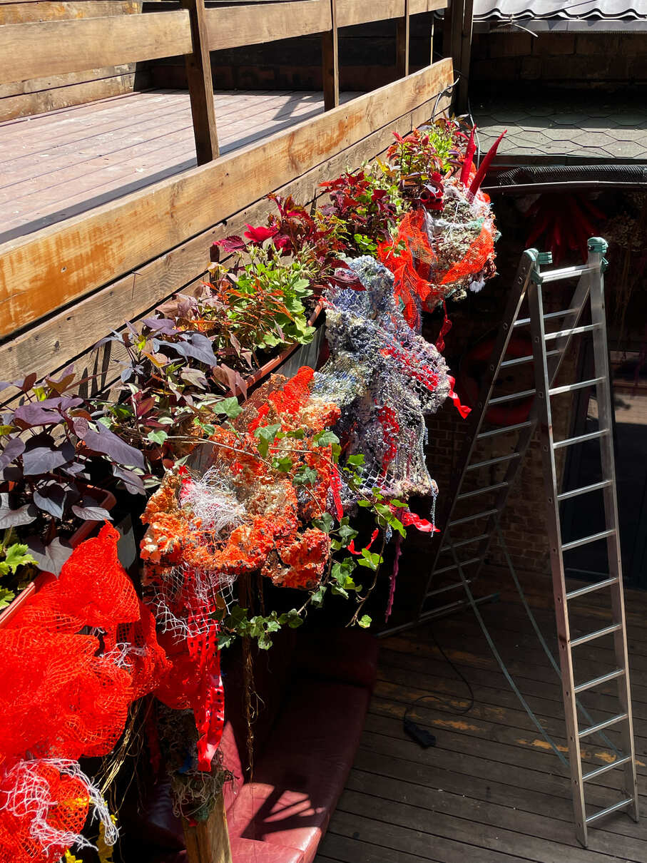 ВТОРИННИЙ ПЛАСТИК, ПУХНАСТІ НИТКИ, СІТКА, КАБЕЛЬНІ СТЯЖКИ, НАМИСТИНИ, ТРУБОЧКИ, ГІПС, МОТУЗКИ, ФАРБИ, СВІТЛОДІОДНІ СТРІЧКИ, КВІТКОВІ КОМПОЗИЦІЇ.