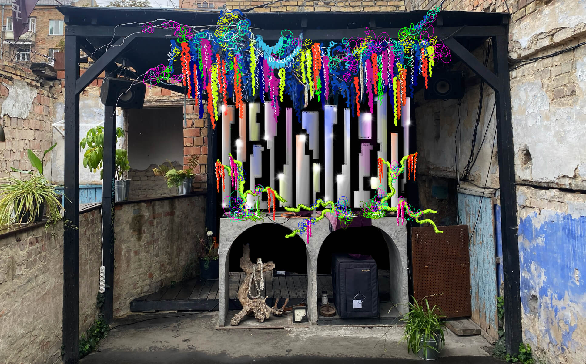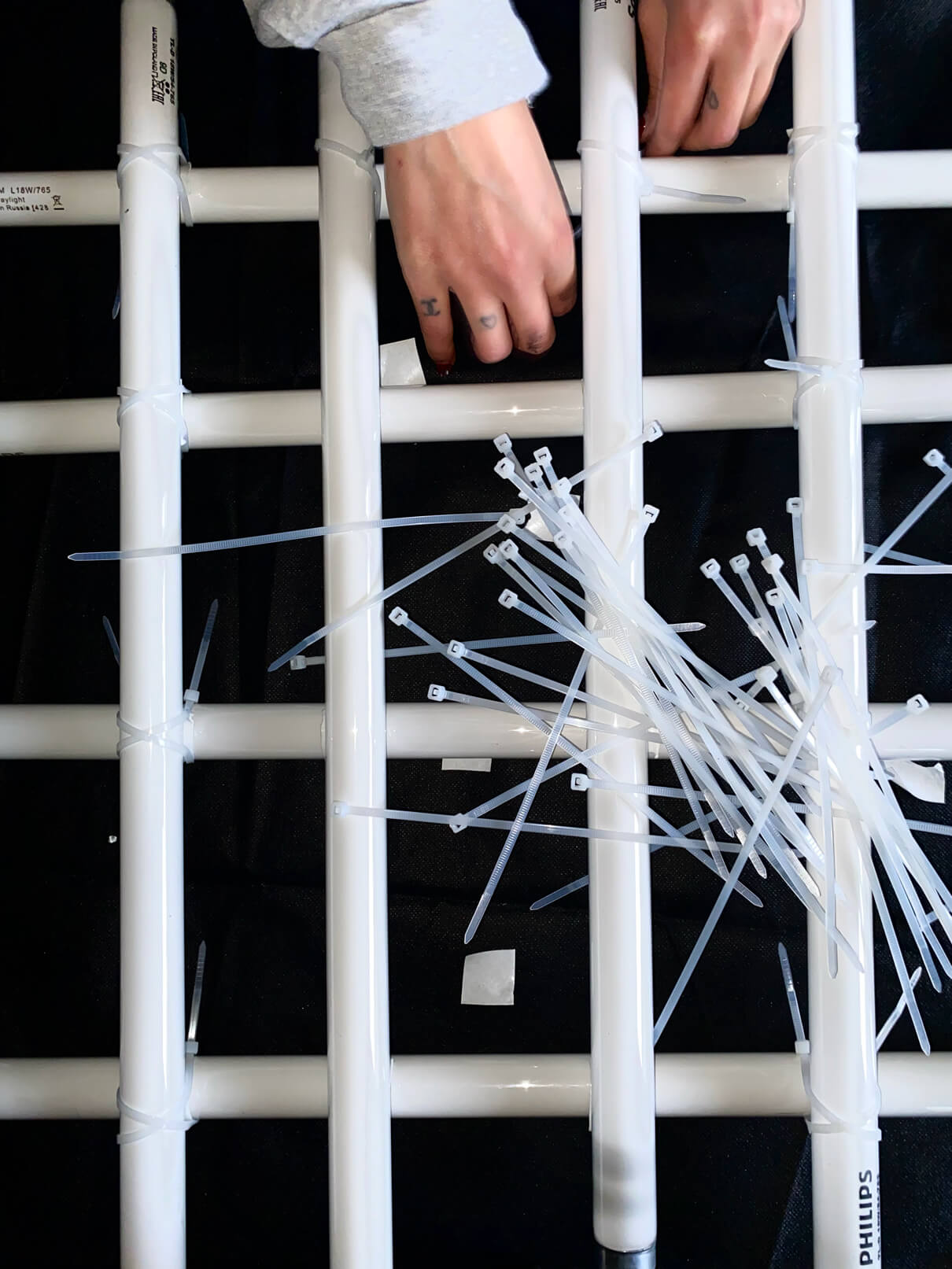 СТЕЙДЖ «МЕЙН» НЕПРАЦЮЮЧІ ЛЕД ЛАМПИ, ДЕРЕВ'ЯНІ РЕЙКИ, ПЛАСТИКОВІ ХОМУТИ, АЕРОЗОЛЬНА ХРОМОВА ФАРБА, МЕТАЛЕВИЙ ДРІТ.