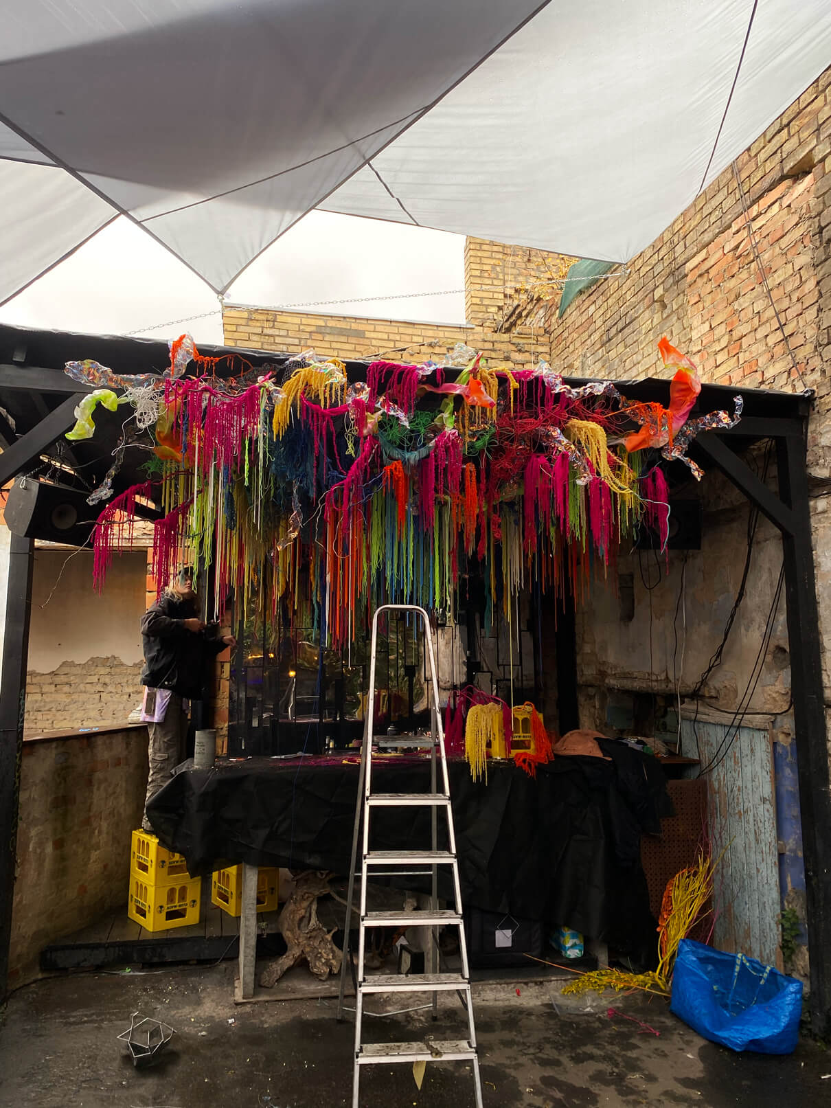 СТЕЙДЖ «ЛІТКА» ЛИСТ ОСБ, ЧОРНА ГУМОВА ФАРБА, АЕРОЗОЛЬНА КОЛЬОРОВА ФАРБА, АЕРОЗОЛЬНИЙ ЛАК, ПЛАСТИКОВІ ХОМУТИ, МЕТАЛЕВИЙ ДРІТ, САМОРІЗИ, ДВОСТОРОННІЙ СКОТЧ, ГЕОМЕТРИЧНІ ФОРМИ ІЗ НЕРЖАВІЙКИ, ГІЛКИ, СТАБІЛІЗОВАНИЙ АМАРАНТ, ПЛАСТИК ХАМЕЛЕОН, ВТОРИННИЙ ПЕРЕПЛАВЛЕНИЙ ПЛАСТИК, НЕЙЛОНОВІ МОТУЗКИ, КОЛЬОРОВІ НИТКИ ДЛЯ В'ЯЗАННЯ, КВІТКОВА КОМПОЗИЦІЯ, БЕТОННІ БЛОКИ.
